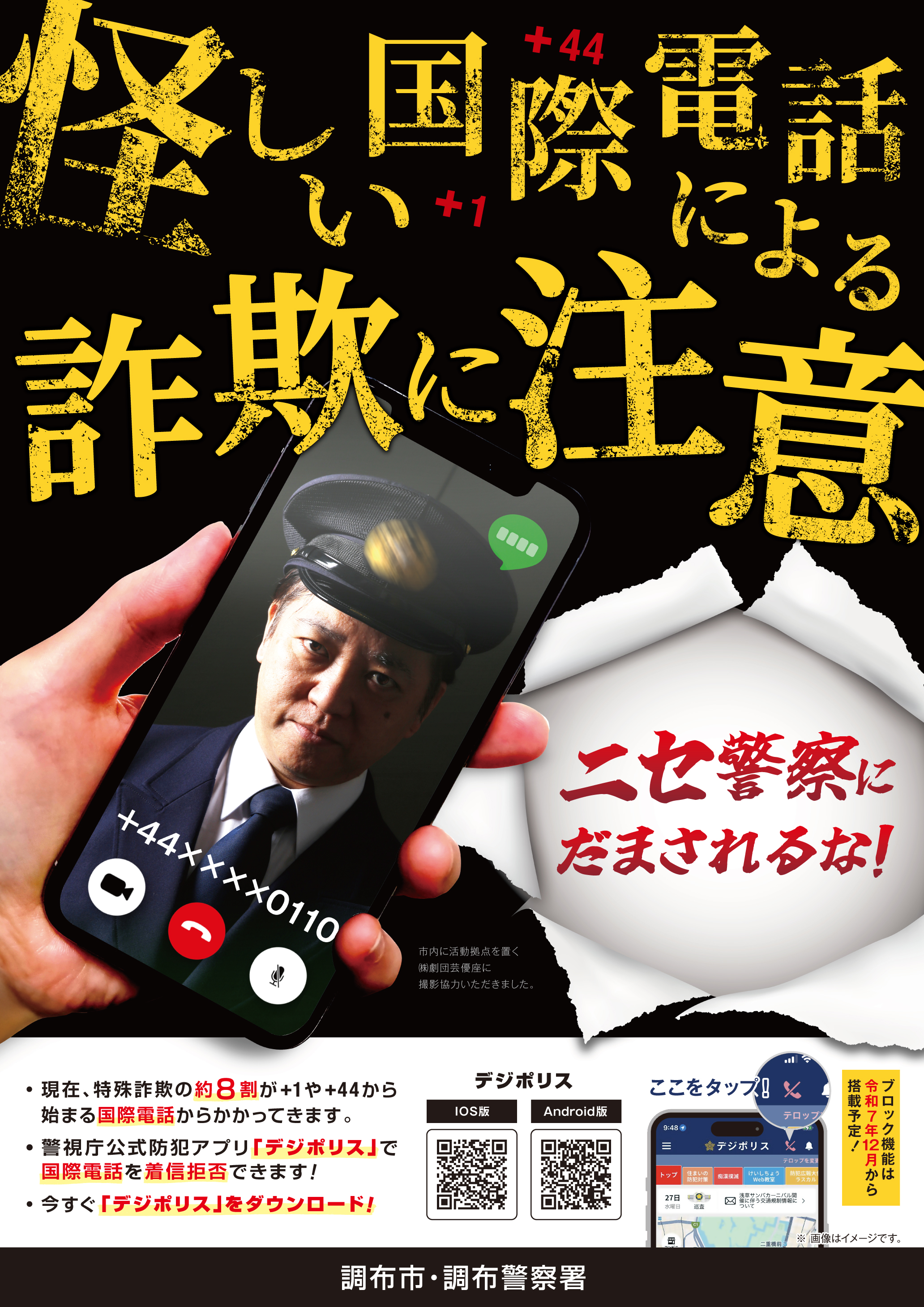 メールけいしちょうなどによりお住まいの地域の防犯情報を知ることができる警視庁公式防犯アプリ「デジポリス」の設定により国際電話からの着信通知を遮断することが可能です。