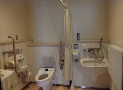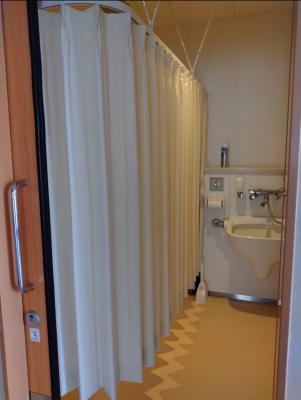 介助者を同伴してトイレを使用する際に、使用者と介助者の間を遮ることができます。